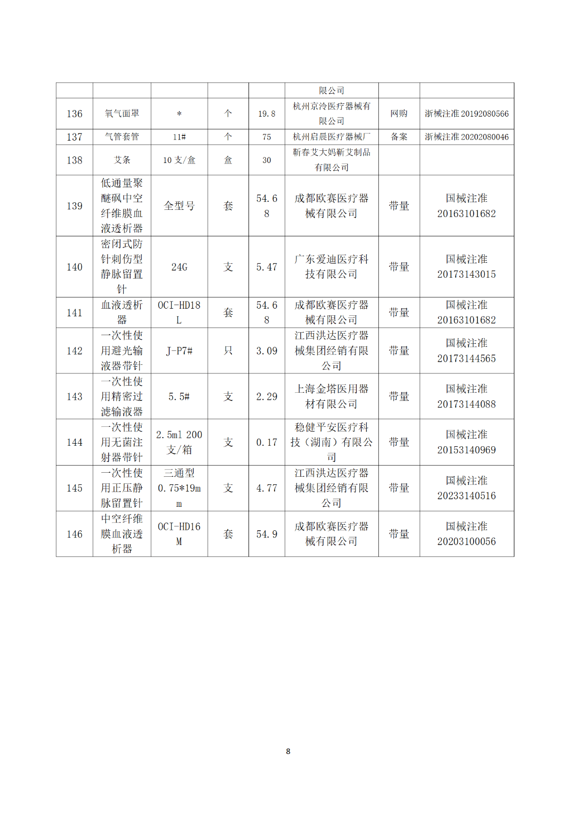 5.不收费的耗材,在满足临床使用的前提下,可更换质优价宜的产品。