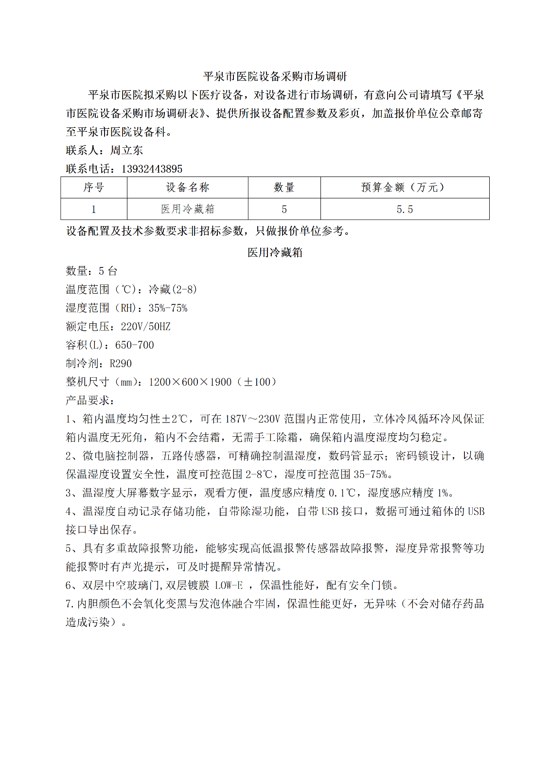 平泉市医院设备(医用冷藏箱)采购市场调研