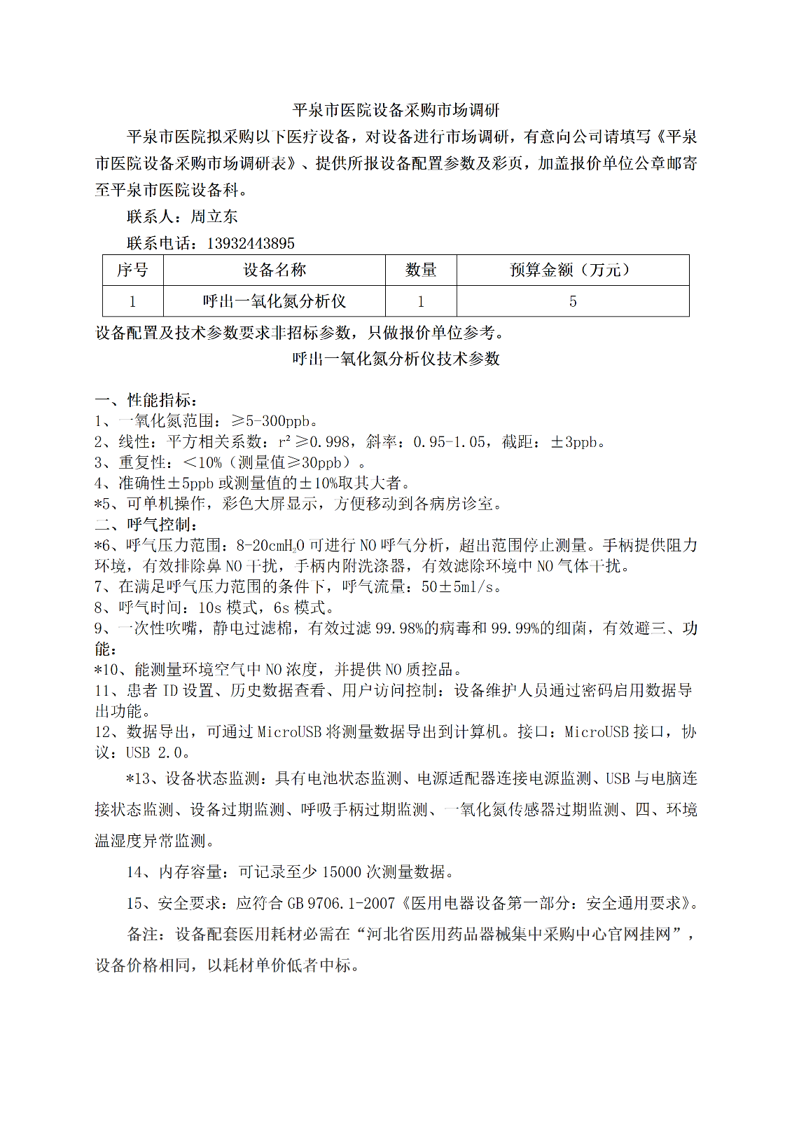 平泉市医院设备(呼出一氧化氮分析仪)采购市场调研